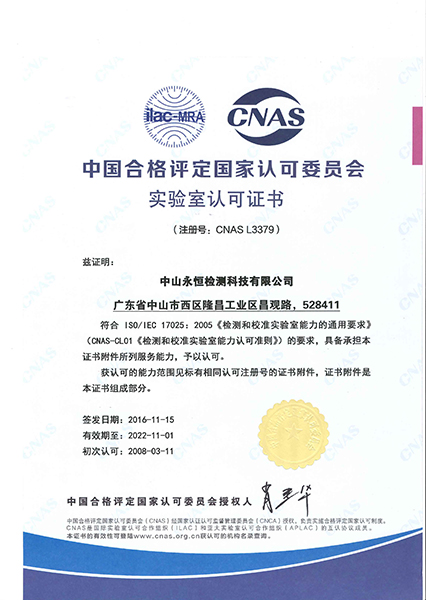 永恒檢測嚴格按照ISO/IEC 17025建立實驗室管理體系,獲得CMA(國家認證認可監督管理委員會)認證及CNAS(中國合格評定國家認可委員會)認可,所出具的檢測報告具有法律效力和國際公信力。